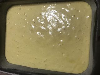 Imburrare ed infarinare una teglia rettangolare da 20 × 30 cm. Versare il composto nella teglia e infornare.
